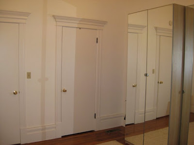 Bedroom closet door and the mirrored armoires from my old apartment. Surprisingly, this apartment has very little storage - one closet (here) and one pantry (kitchen).